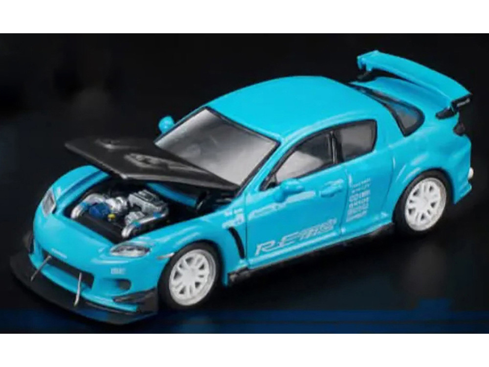 - Brand new 1/64 scale diecast car model of Mazda RX8 RE Amemiya RHD (Right Hand Drive) Light Blue with Carbon Hood "Tokyo Auto Salon 2026" die cast model car by Pop Race.