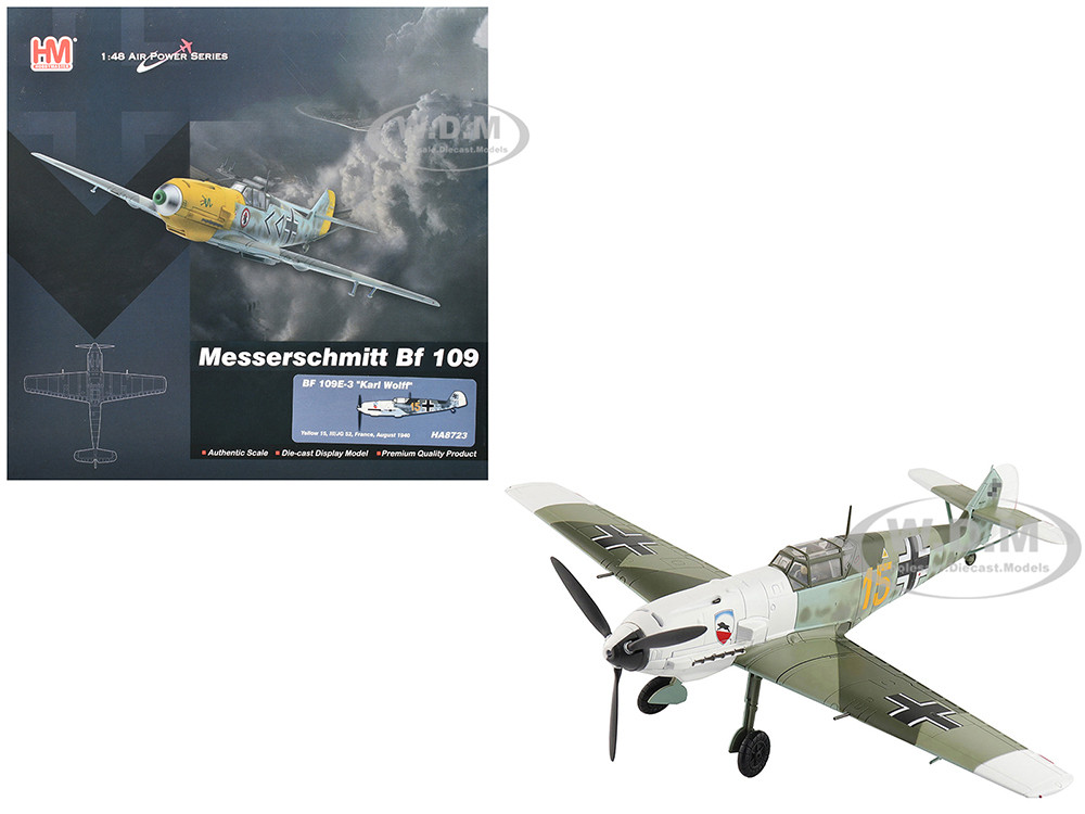 - Brand new 1/48 scale diecast model of Messerschmitt Bf 109E-3 Fighter Aircraft "Yellow 15, Karl Wolff, III/JG 52, France" (1940) German Luftwaffe "Air Power Series" die cast model by Hobby Master.
