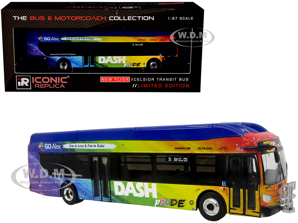 - Brand new 1/87 (HO) scale diecast model of New Flyer Xcelsior XN40 Transit Bus "DASH Pride Livery" Blue with Rainbow Graphics "The Bus & Motorcoach Collection" Limited Edition die cast model by Iconic Replicas.