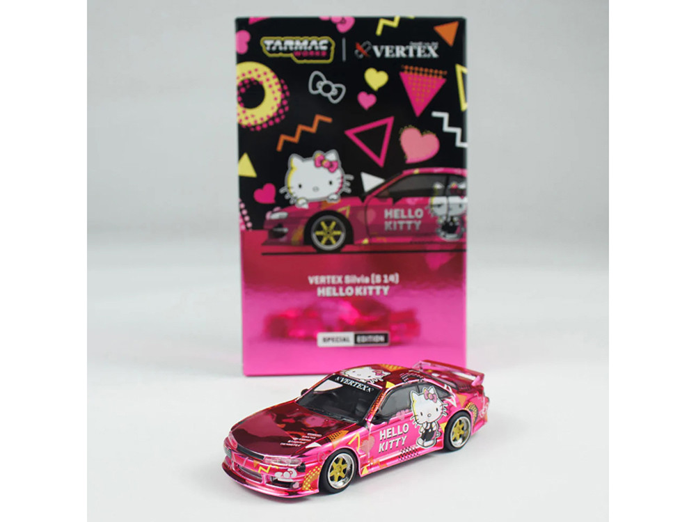 - Brand new 1/64 scale diecast model car of Nissan Vertex Silvia (S14) RHD (Right Hand Drive) "Hello Kitty" Pink Metallic with Graphics "Global64" Series die cast model car by Tarmac Works.