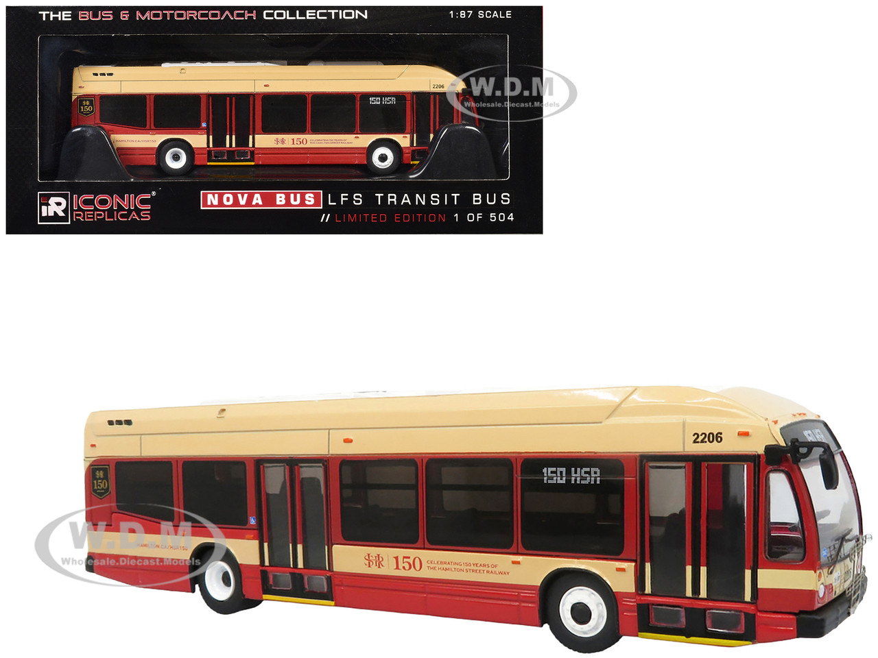 - Brand new 1/87 (HO) scale diecast model of Nova Bus LFS HEV Transit Bus "Hamilton Street Railway 150th Anniversary" Cream and Red "The Bus & Motorcoach Collection" Limited Edition to 504 pieces Worldwide die cast model by Iconic Replicas.