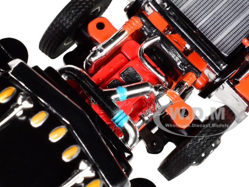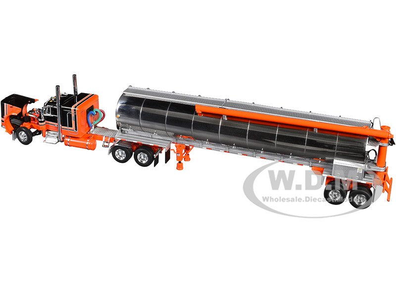 Peterbilt 379 with 48" Flat Top Sleeper and Walinga Bulk Feed Trailer Orange and Black with Stripes 1/64 Diecast Model by DCP/First Gear