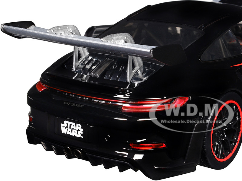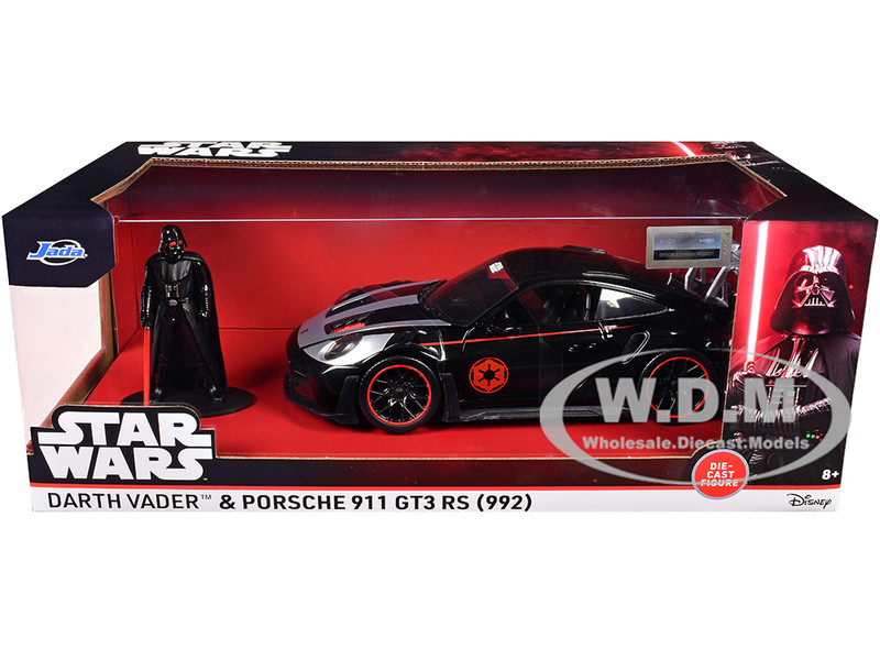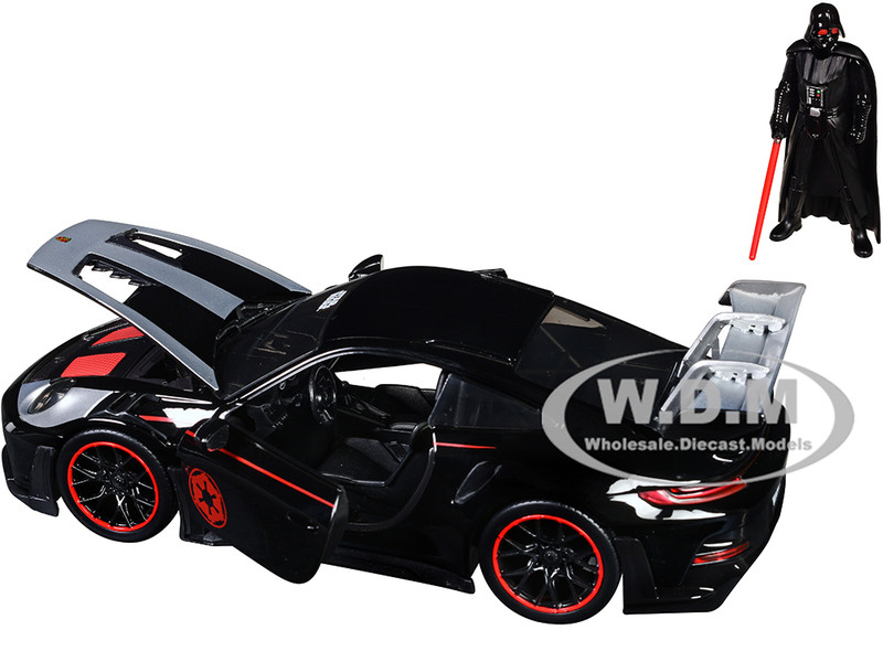 - Brand new 1/24 scale diecast car model of Porsche 911 GT3 RS (992) Black with Silver Hood and Graphics and Darth Vader Figure "Star Wars" Franchise "Hollywood Rides" Series die cast model car by Jada.