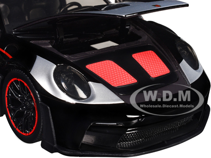 - Porsche 911 GT3 RS (992) Black with Silver Hood and Graphics and Darth Vader Figure "Star Wars" Franchise "Hollywood Rides" Series 1/24 Diecast Model Car by Jada