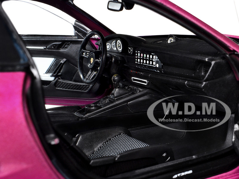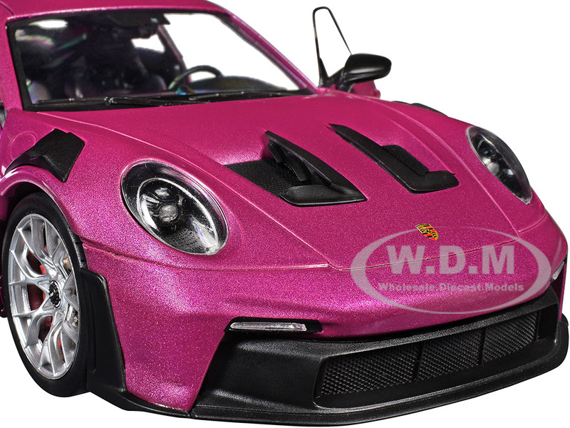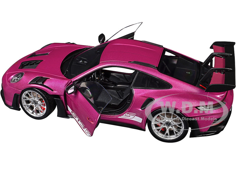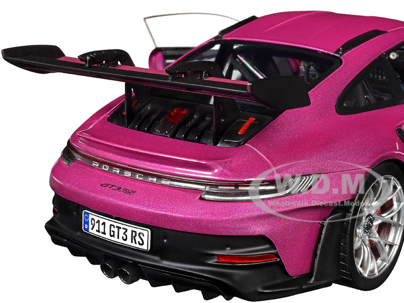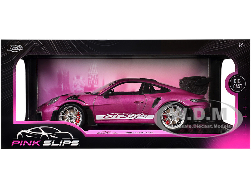 - Brand new 1/18 scale diecast car model of Porsche 911 GT3 RS Red Violet Metallic with White Stripes "Pink Slips" Series die cast model car by Jada.