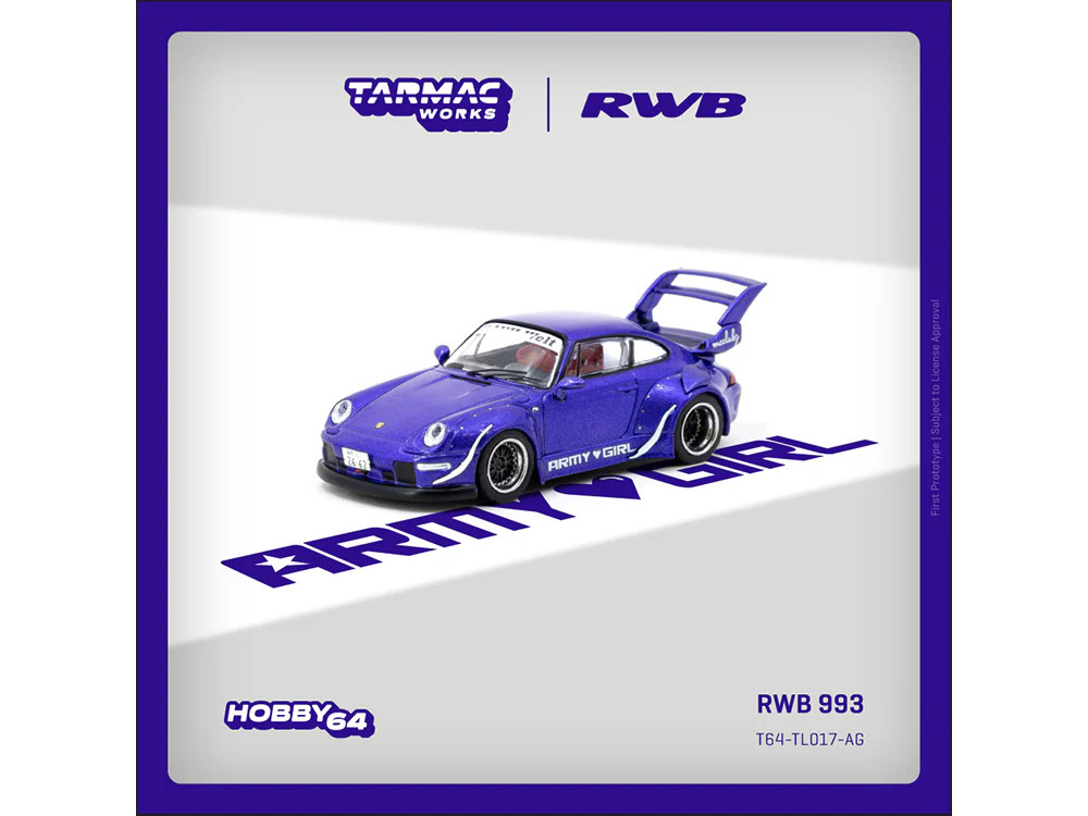 - Brand new 1/64 scale diecast model car of RWB 993 "Army Girl" Purple Metallic "Hobby64" Series die cast model car by Tarmac Works.