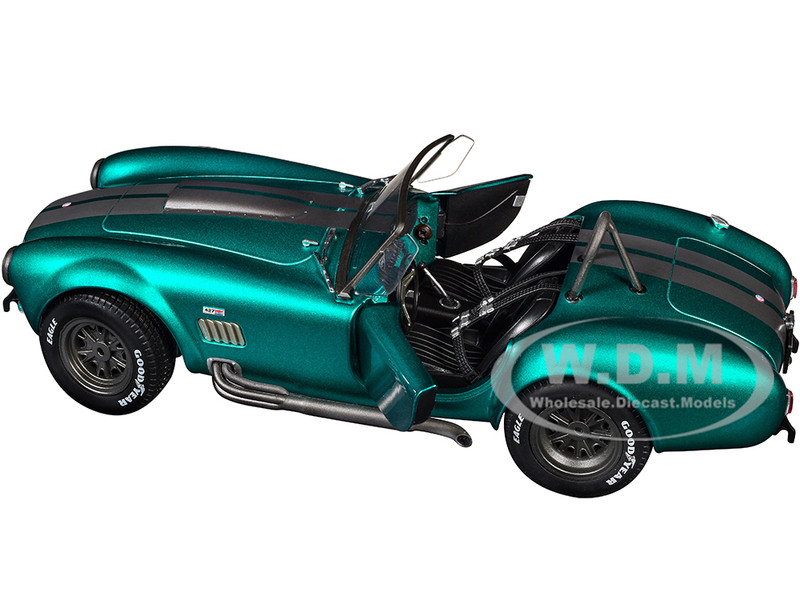 - Brand new 1/18 scale diecast car model of Shelby Cobra 427 MKII Teal Metallic with Gray Stripes "Pink Slips" Series die cast model car by Jada.