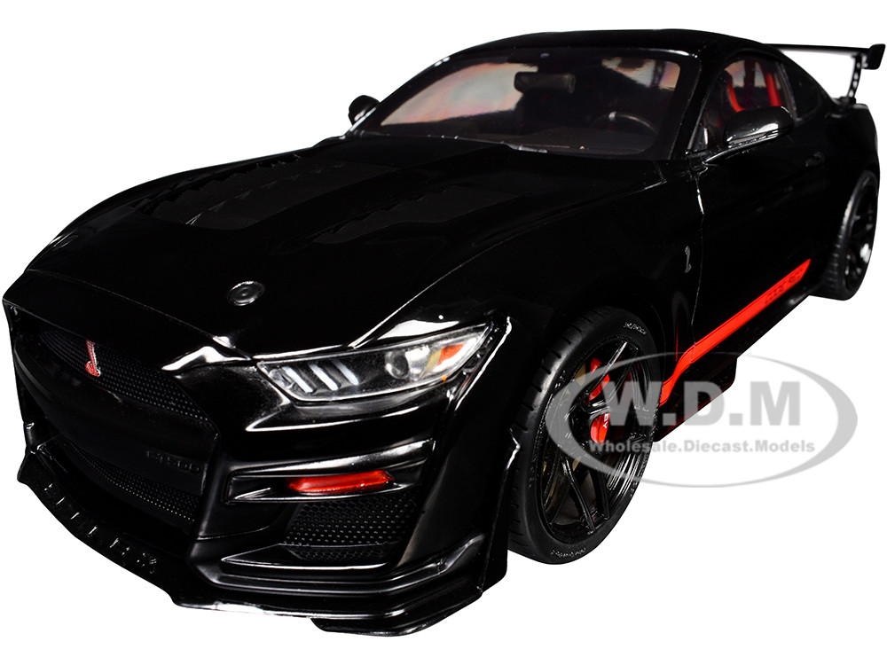 - Brand new 1/18 scale diecast car model of Shelby GT500 "Code Red" Black with Red Stripes "Pink Slips" Series die cast model car by Jada.