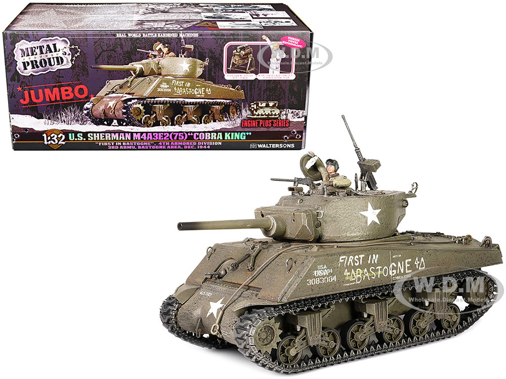 - Brand new 1/32 scale diecast model of Sherman M4A3E2 (75) “Cobra King” Medium Tank “First in Bastogne” George Smith Patton’s 4th A.Div. 3rd Army, Bastogne area (26 December 1944) "Engine Plus" Series die cast model by Metal Proud.