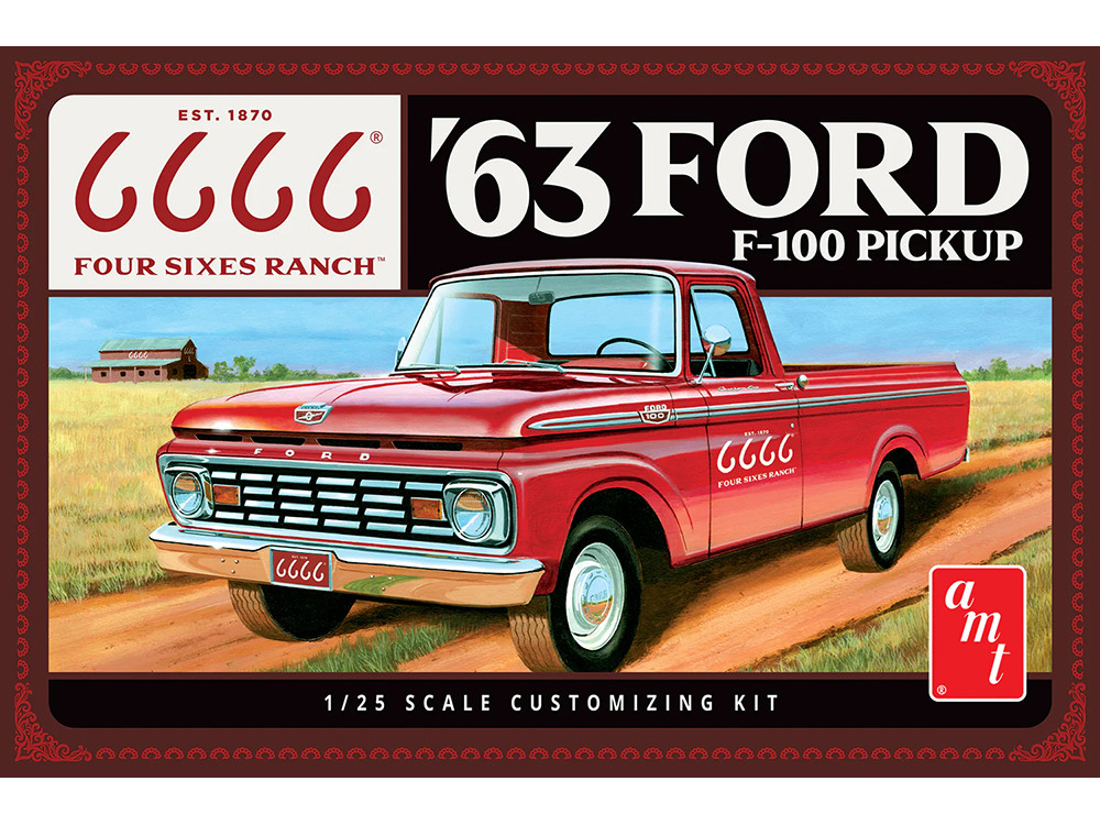 - Brand new 1/25 scale plastic model kit of 1963 Ford F-100 Pickup Truck "Four Sixes Ranch" 3-in-1 Kit (Skill 2) 1/25 plastic model kit by AMT.