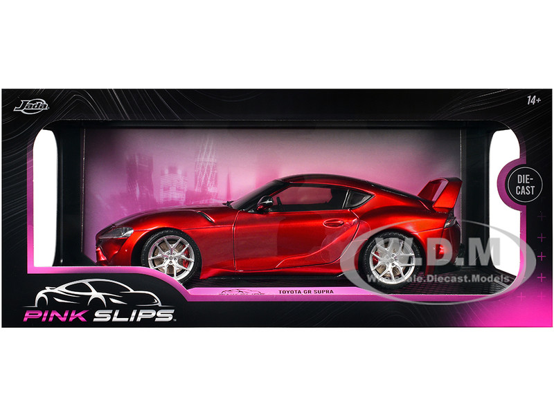 - Brand new 1/18 scale diecast car model of Toyota GR Supra Red Metallic "Pink Slips" Series die cast model car by Jada.