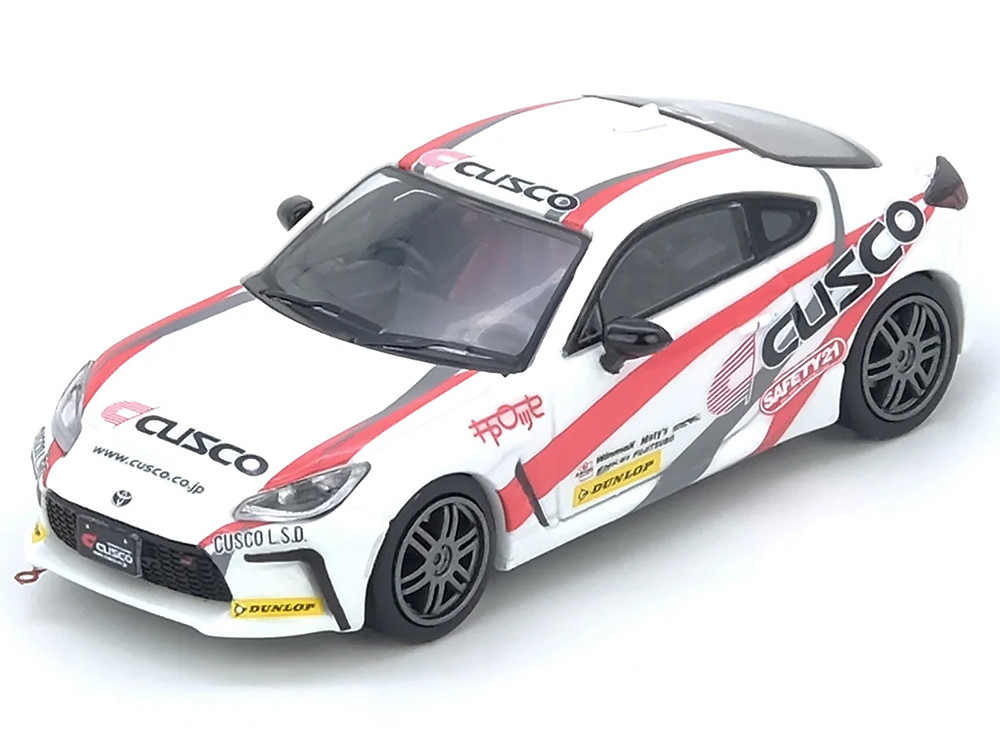 - Brand new 1/64 scale diecast car model of Toyota GR86 Tuned by "CUSCO" RHD (Right Hand Drive) White with Red and Gray Stripes die cast model car by Inno Models.
