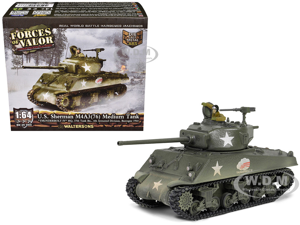 - Brand new 1/64 scale diecast model of U.S. Sherman M4A3(76) Medium Tank "THUNDERBOLT IV, 37th Tank Battalion, 4th Armored Division, Bastogne" (1944) United States Army "Mini AFV" Series die cast model by Forces of Valor.