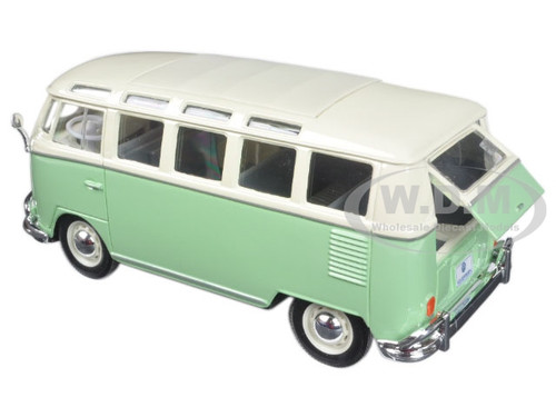- Brand new 1/25 scale diecast model of Volkswagen Van Samba Bus Green and Cream die cast model by Maisto.