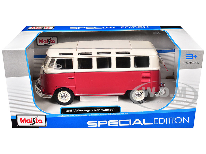 - Brand new 1/25 scale diecast model of Volkswagen Van Samba Bus Red and White die cast model by Maisto.