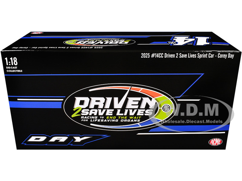 - Brand new 1/18 scale diecast car model of Winged Sprint Car #14CC Corey Day (Blue Version) "Driven 2 Save Lives" Jason Meyers Racing (2025) die cast model car by ACME.